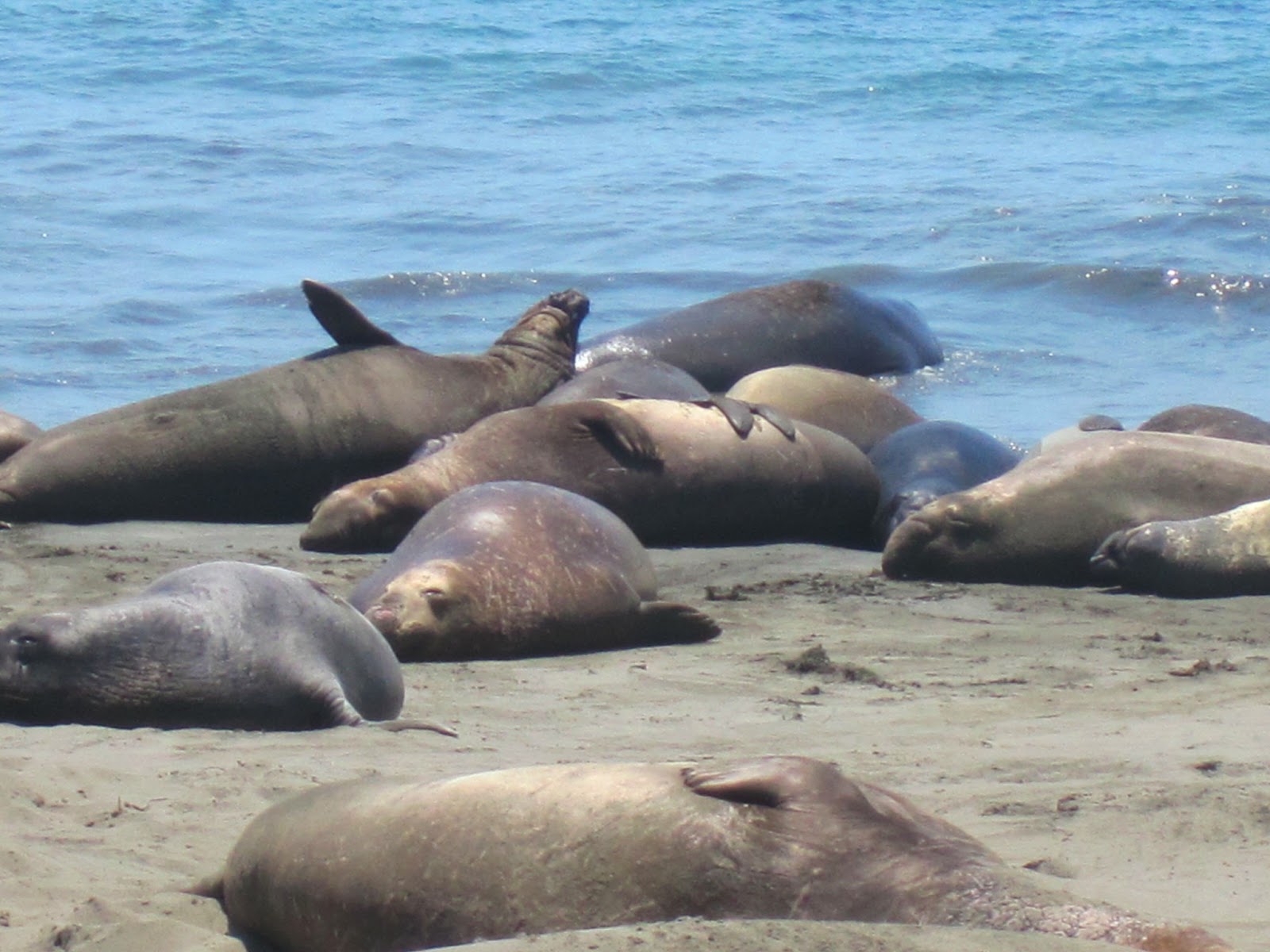 We kept going and after a while we found a beach full of elephant seals! There were tons of people checking these guys out, and the tourists were kept away by fences and parks officials. Apparently these particular seals are all males, and they are molting (shedding the outer layer of fur) There was a bit of fighting going on between rival alpha males, but mostly a lot of sleeping and snorting. They made bizarre noises...